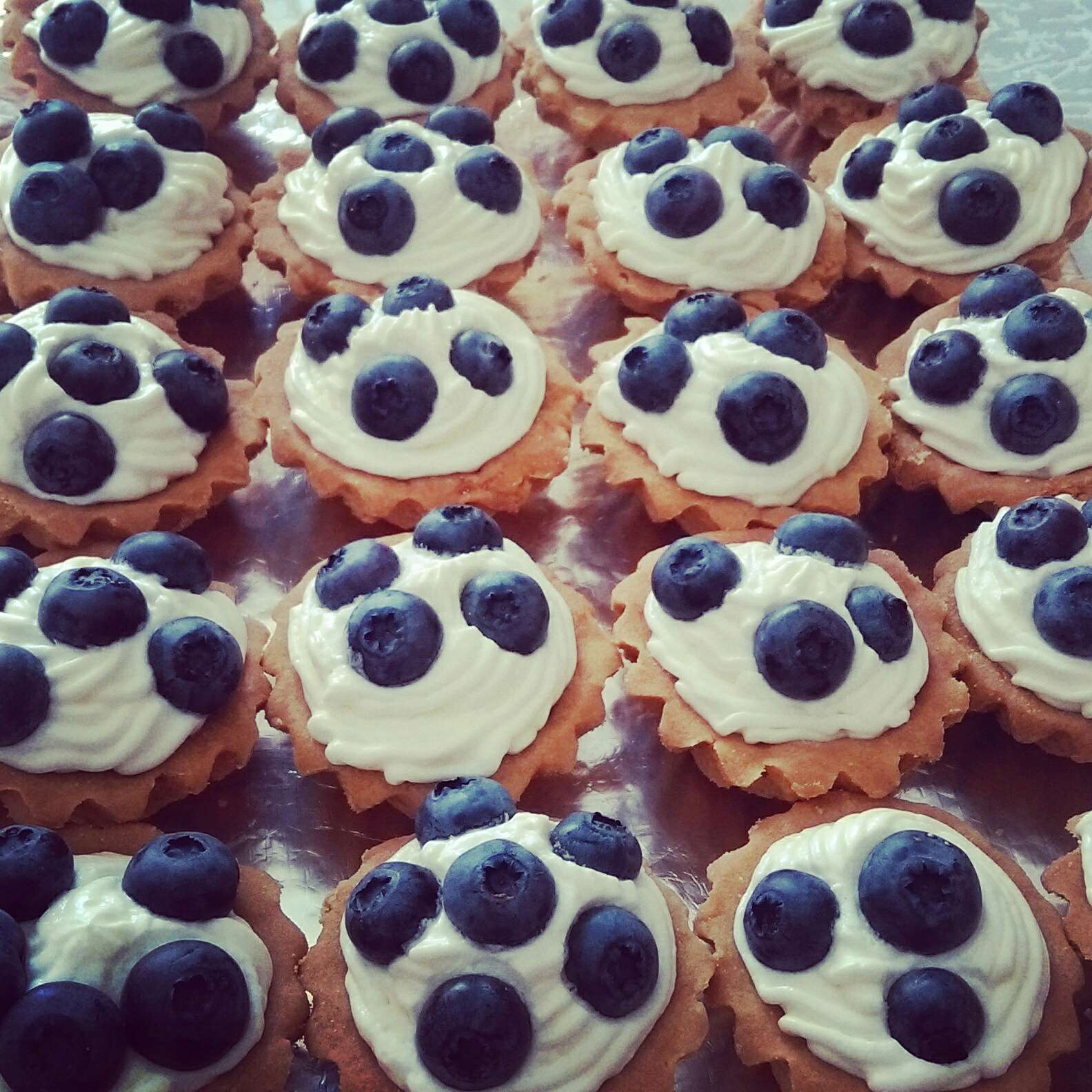6. Wyjmujemy babeczki z foremek i wykładamy na nie bitą śmietanę i dekorujemy owocami.