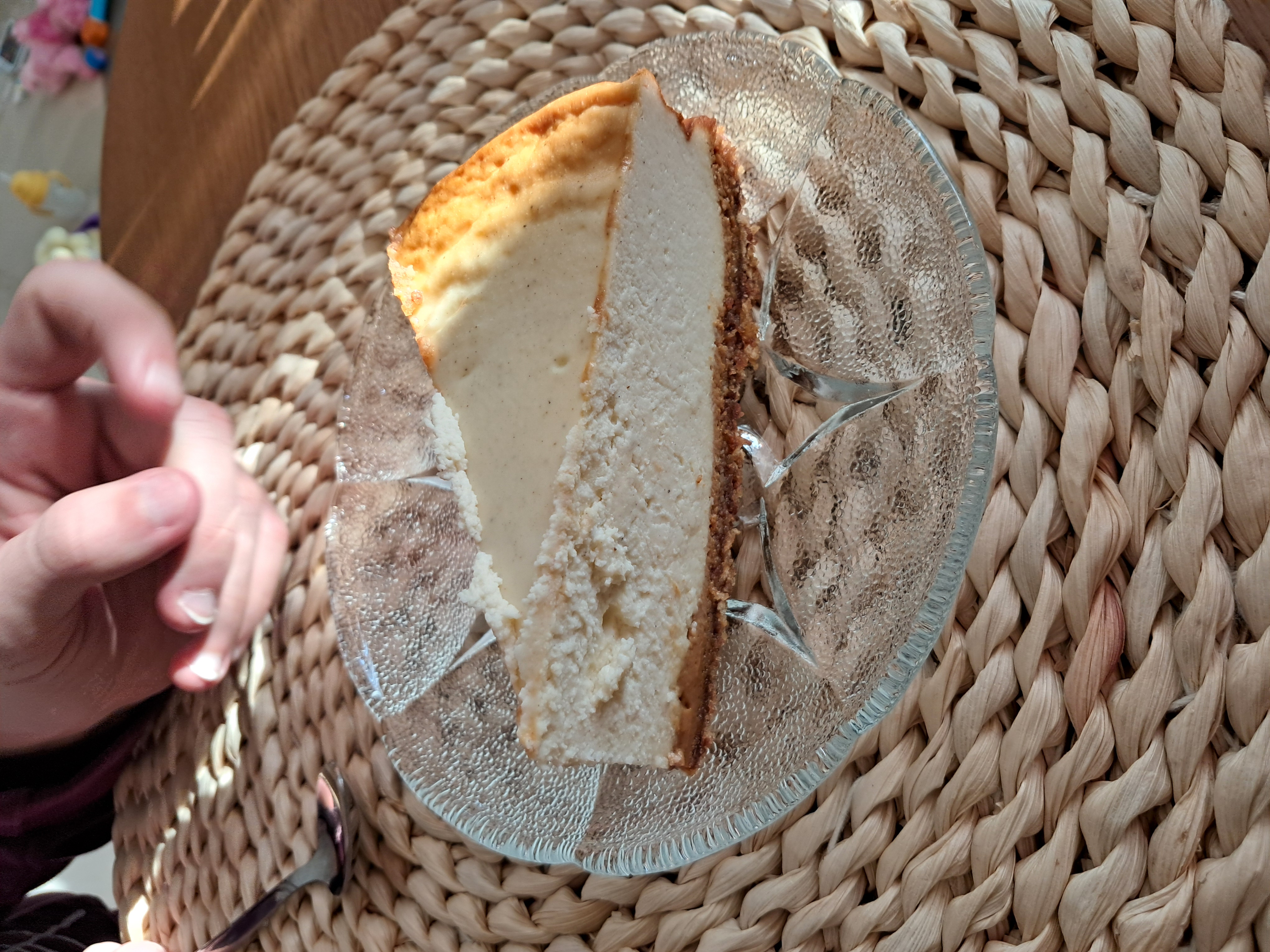 Wstawiamy do środkowej części piekarnika, nagrzanego do 175 stopni C. Pieczemy 20 minut, następnie zmniejszamy temperaturę do 120 stopni i pieczemy kolejne 1,5-2 h do czasu aż masa serowa się zetnie.